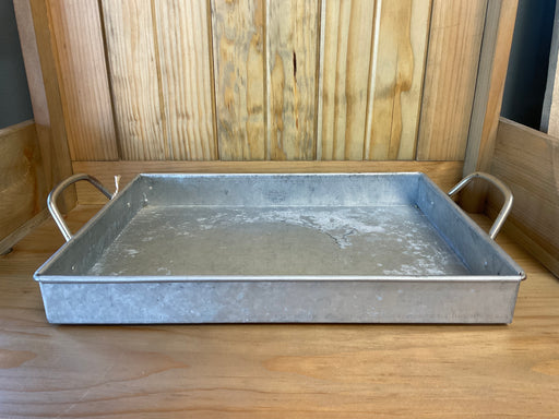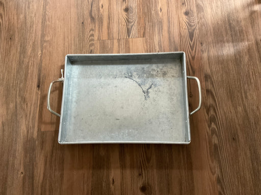 Only 1 left!Galvanized metal tray with brass handles. 11”x15”x2”
