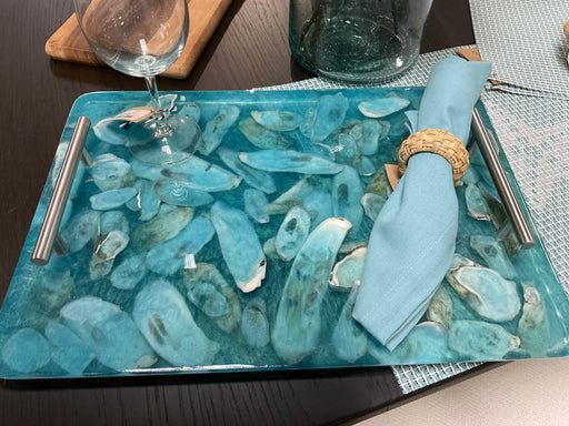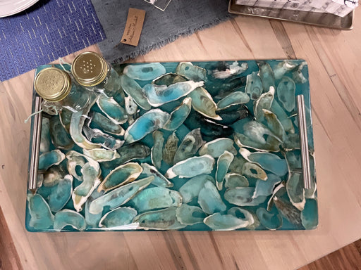 Only 1 left!Hand made resin charcuterie board with oyster shells with handles. Food safe, hand wash. 19.5”x12”