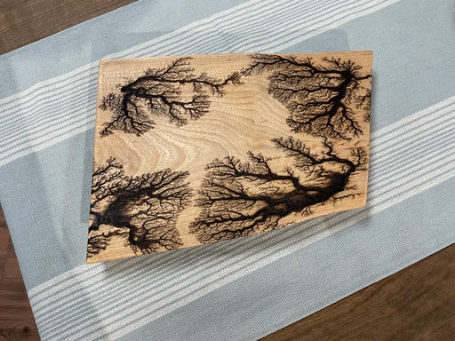 Only 1 left!Pine wood that has been fractal burned, a technique which uses a high voltage electric current to create a design, and then filled in with differen...