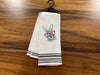 Easter dish towels, 16” x 26”, cotton, embroidered bunnies, white with gray stripes