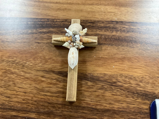 Only 1 left!Wood cross hand decorated with shells. 8”x5”